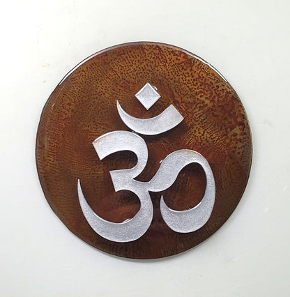 Measuring 7.5" in diameter, this OM symbol is compact yet impactful, making it ideal for various display settings. Equipped with a hook on the back, it's easy to hang and enjoy wherever you choose.