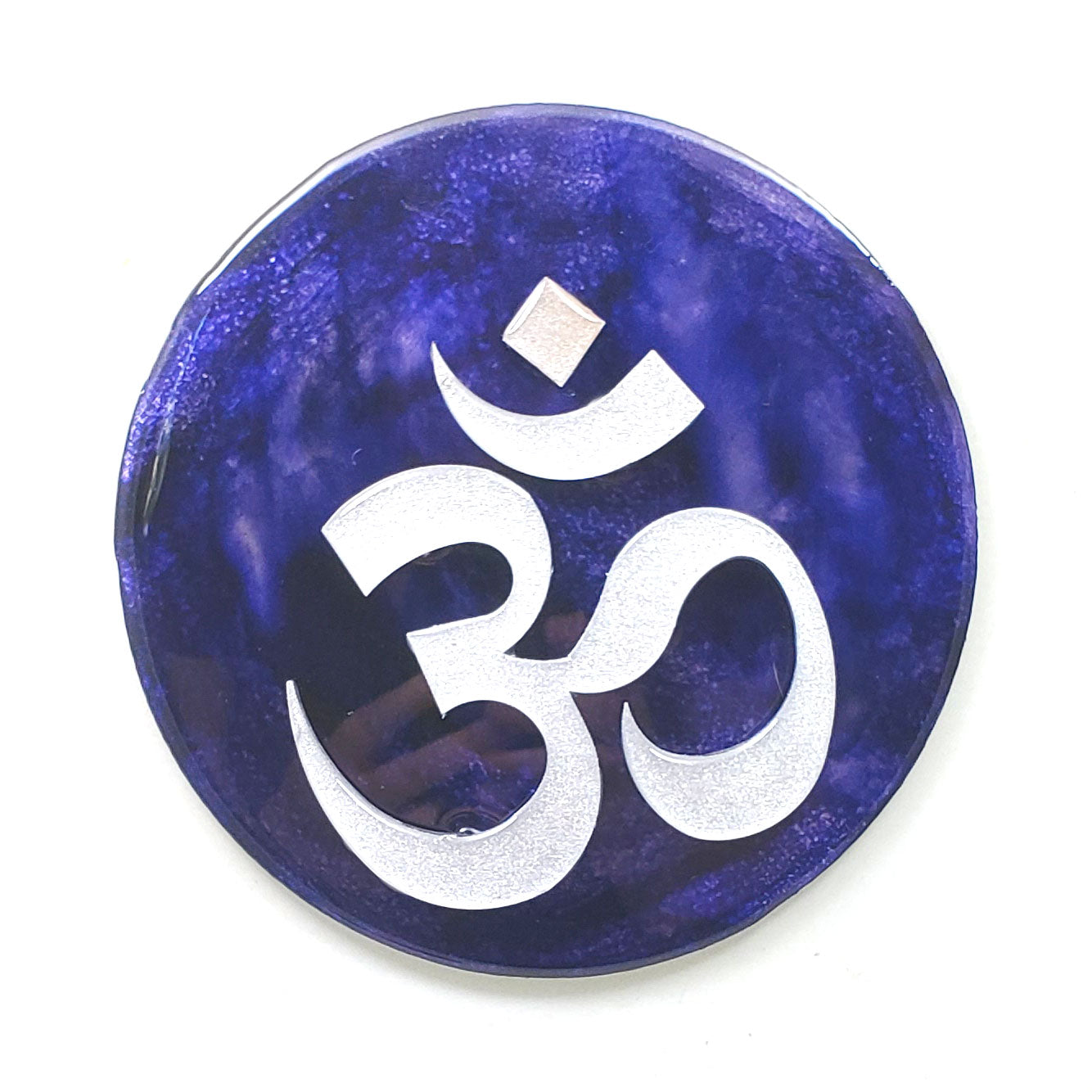 Each OM symbol is crafted with precision using a plasma cutter to cut the steel into shape. Intricate designs are then meticulously grinded into the metal, adding depth and character to each piece. A vibrant dye or patina is carefully applied to infuse the symbol with color and vibrancy, creating a stunning visual focal point.