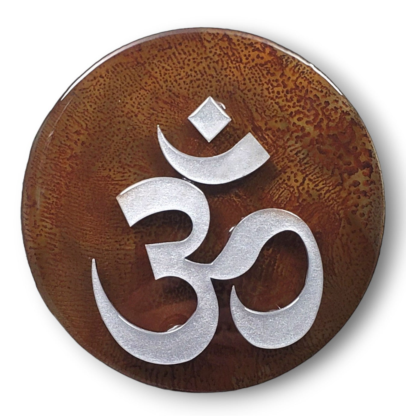 Measuring 7.5" in diameter, this OM symbol is compact yet impactful, making it ideal for various display settings. Equipped with a hook on the back, it's easy to hang and enjoy wherever you choose.