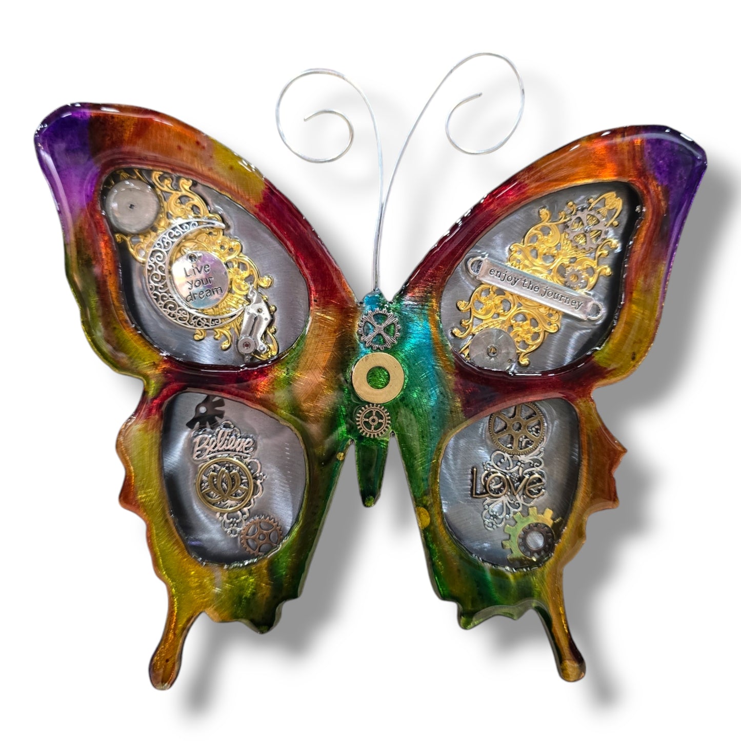 Metal Wall Decor: Steampunk Butterfly Multi ($125) 12" x 12" red yellow