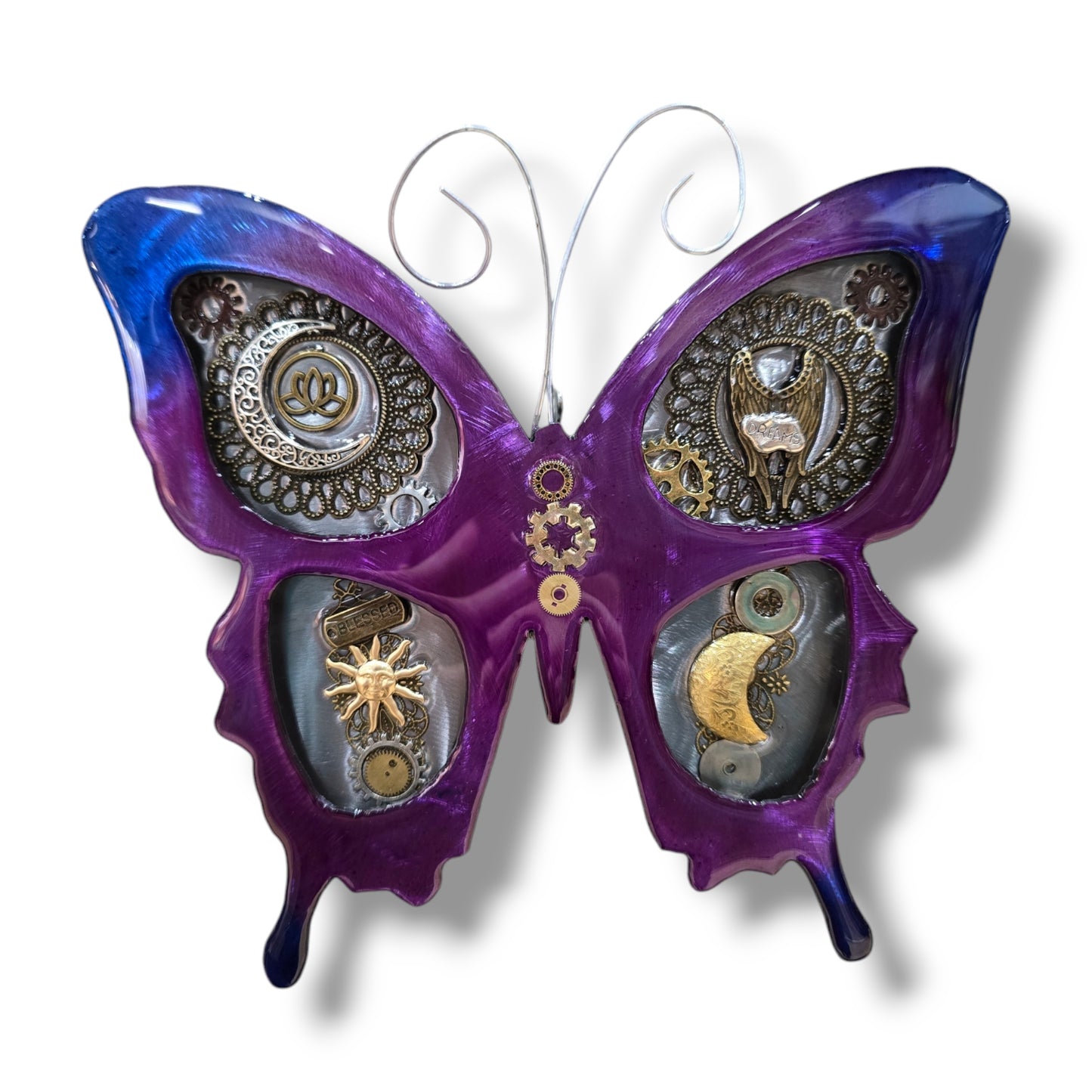Metal Wall Decor: Steampunk Butterfly Purple Blue ($125) 12" x 12"