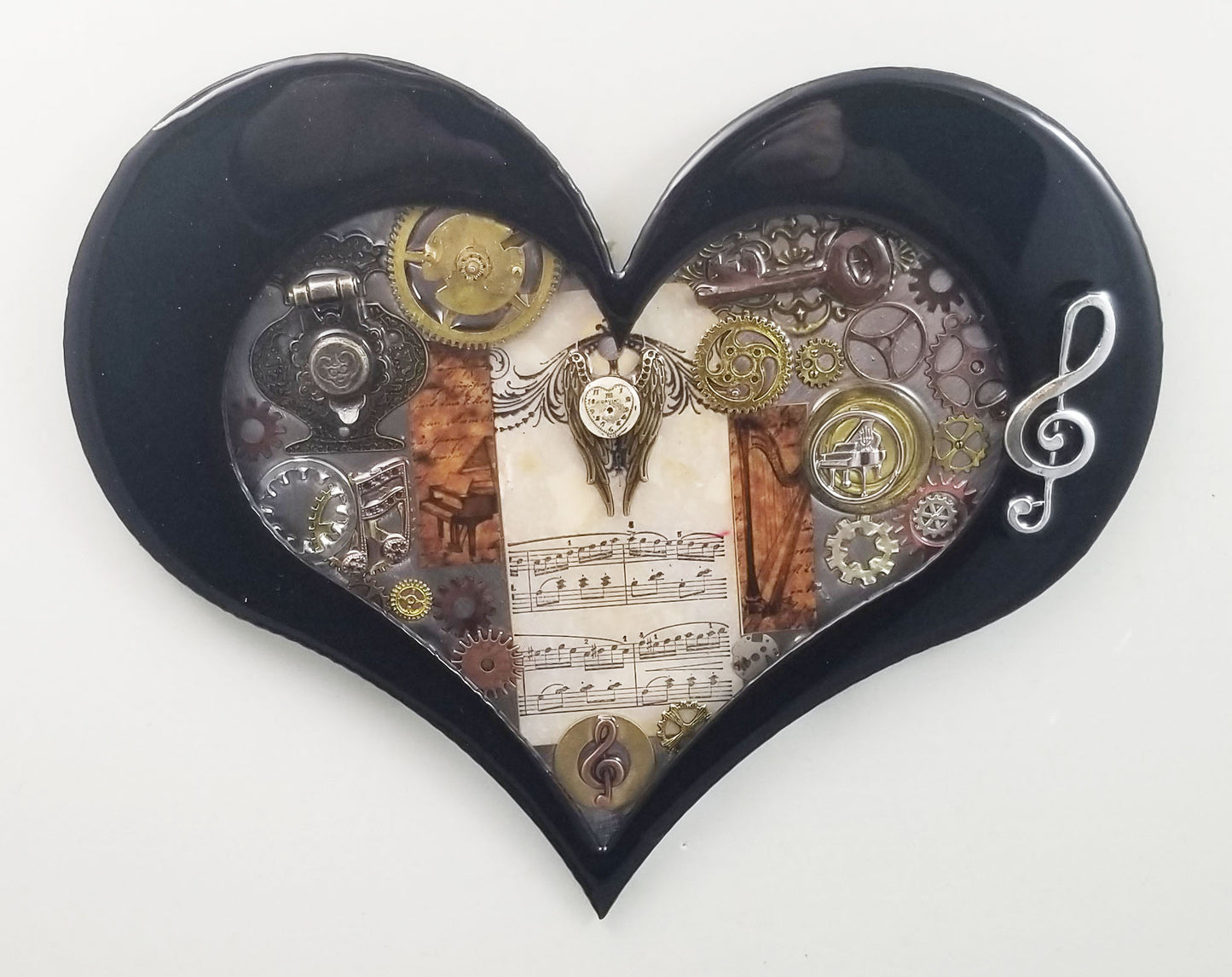 Steampunk Heart: Music Black ($140) 10" x 8" SOLD!