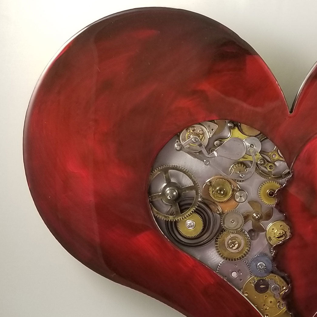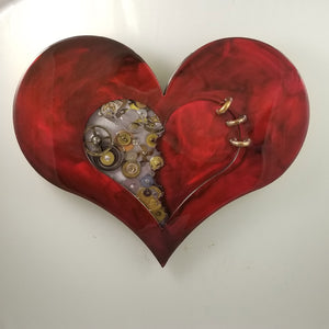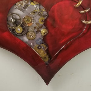 The inner workings revealed.. made with clock parts, gears and various recycled metals. Steampunk decor for your home.